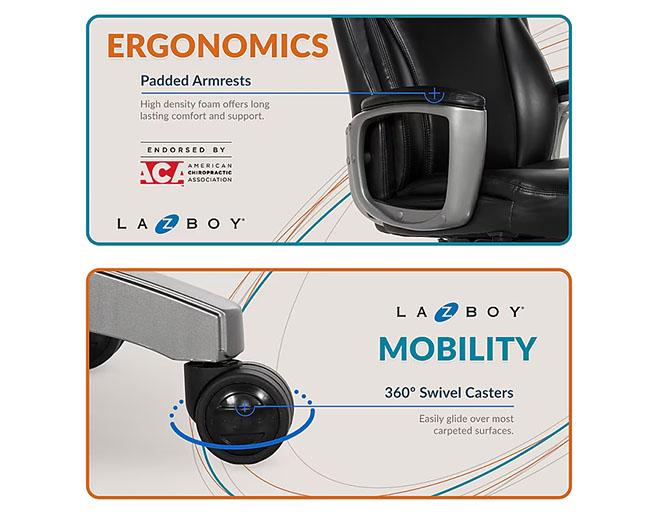 Lazboy Arcadian כיסא מנהלים אורתופדי שחור