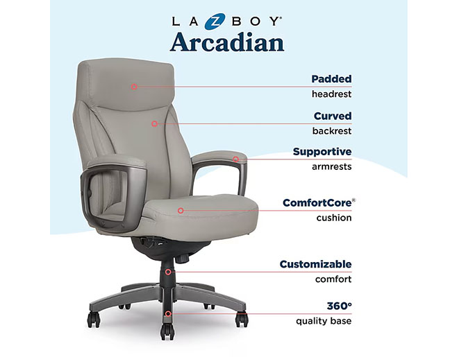 LAZBOY ARCADIAN לייזיבוי ארקדיין הינו כיסא המנהלים מבית לייזיבוי מעניק תמיכה מלאה לגב וישיבה נוחה ומפנקת.